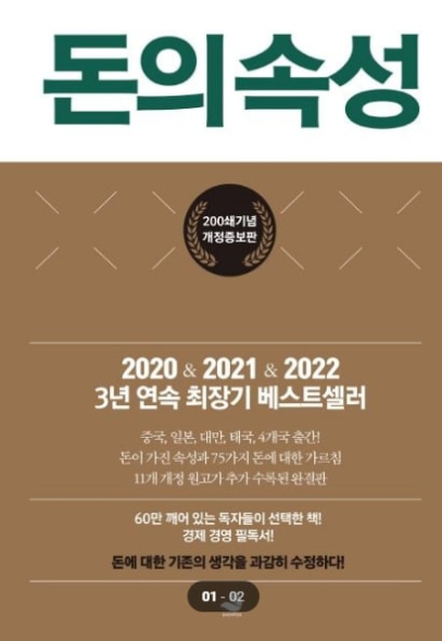 출간된 지 3년이 넘었다. 2020, 2021, 2022년, 3년 연속 최장기 베스트셀러가 된 책이 있다. 돈에 대한 고정관념을 깨며 돈의 속성에 대해서 말하고 75가지의 돈에 대한 가르침을 말하듯이 풀어나가는 책 <돈의 속성>을 소개한다. 저자인 김승호 회장의 별명은 '사장을 가르치는 사장'이다. 그만큼 사업가들에게 여러 강연을 하고 그들이 사업을 잘 이끌어 나가기를 간절히 바라는 사람 중에 한 명이다. 그가 이끄는 외식 그룹인 스노우폭스 그룹은 연매출 1조 원을 달성하여 글로벌 기업으로 우뚝 섰으며 전 세계적으로 4천 개 정도의 매장을 운영 중이고 한국에도 강남을 중심으로 20여 개의 지점을 운영하고 있다. 필자는 사실 스노우폭스 도시락, 스노우폭스 플라워 매장 같은 것은 실제로 본 적은 없다. 아마도 미국에서 많이 유명한 것으로 보인다. 그래서 어떤 사업인지 알게 되기까지는 이후로도 한참의 시간이 필요했다. 그러나, 우연히 유튜브에서 보게 된 김승호 회장의 대중 강연은 인상적이었다. '돈'에 대한 이야기가 그 자체로 솔깃한 면도 있겠지만, 실제로 돈을 많이 벌어본 사람이 느낄 수 있는 것들에 대한 이야기 같은 느낌이 강하게 들었기 때문이다. 때마침 이 책이 그때의 강연을 토대로 쓰였다고 한다. 200쇄 기념 증보판으로 보너스 메시지가 포함되어 있다. 아직 김승호 회장의 유튜브 강연 혹은 이 책을 보지 못하였다면 한 번쯤 읽어볼 만한 책이다.